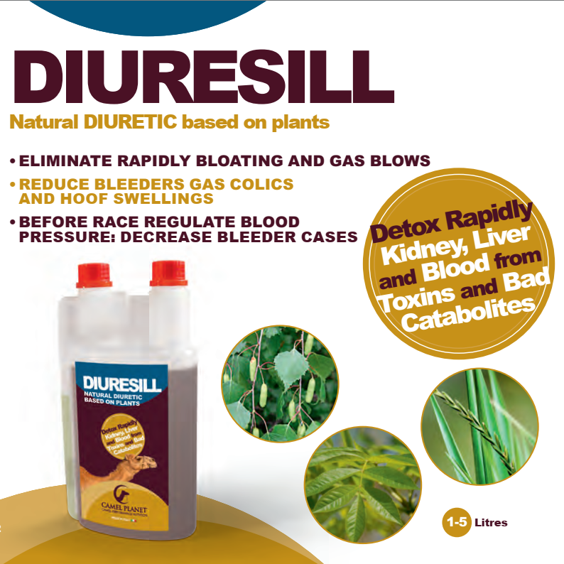 DIURESILL support the camel in the maintenance of a healthy balance fluid within the body. It should be used in all the cases